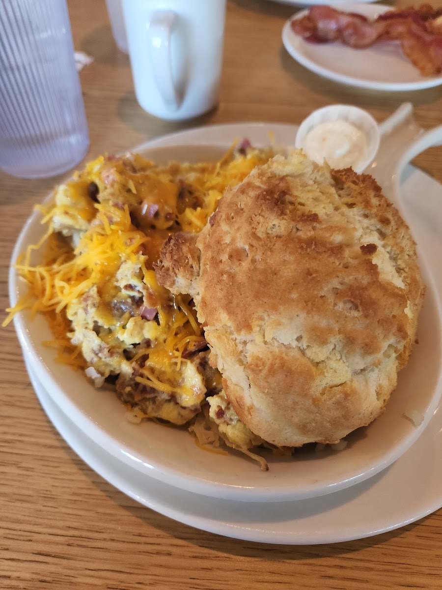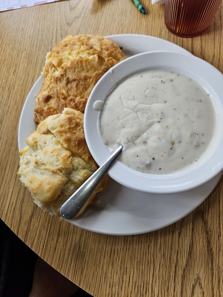 Very nice and clean restaurant nicely decorated with lots of holiday cheer. This was one of five breakfast restaurants we tried during our one week stay in Pigeon Forge, TN. Everything was great except for the strawberries on our waffles. We’re betting that it was previously frozen strawberries because it was mushy and had no taste. But we enjoyed the homemade corned beef hash and eggs and the breakfast burrito. Prices were reasonable and there was a good selection of menu items. The staff were attentive and friendly. Lots of seating as well as lots of free parking.
